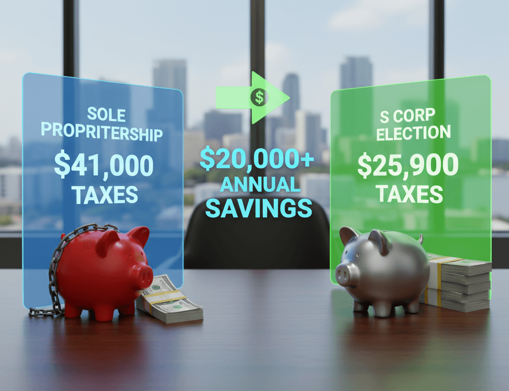 Estimated Annual Employment Tax Savings: ≈$15,100 Additional Savings (Medicare Surtax + QBI): ≈$5,000 to $10,000 TOTAL Annual Tax Savings: $20,000+